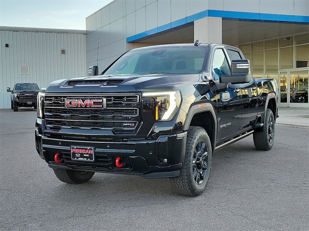 Onyx Black 2026 GMC Sierra 2500HD AT4 4WD 10-Speed Automatic Duramax 6.6L V8 Turbodiesel 10-Speed Automatic, 4WD, Jet Black With Kalahari Accents Leather.